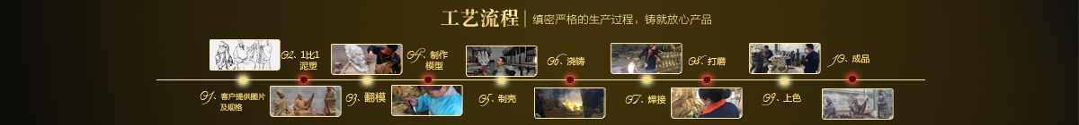 制作一件完美的鑄銅雕塑,最重要的步驟就是制作泥塑模型,然后再用工業(yè)硅膠拓印、翻模。所以泥塑的姿態(tài)、神情生動(dòng)與否直接影響最終銅雕塑的品質(zhì)。所以我廠一直對(duì)泥塑模型的制作格外重視。我廠以雕塑為本,以藝術(shù)為根,挾中華文化之傳統(tǒng),偕歐陸藝術(shù)之風(fēng)韻,風(fēng)格獨(dú)特,盡顯淋漓盡致。我們本著大膽創(chuàng)新、勇于突破的精神,以追求卓越為導(dǎo)向,堅(jiān)持寧缺勿濫為原則,并可依照您提供的要求,為您量身設(shè)計(jì)制作。我廠人才濟(jì)濟(jì),有智慧嚴(yán)謹(jǐn)?shù)墓芾戆嘧樱姸嗄贻p充滿激情、充滿創(chuàng)意的專業(yè)設(shè)計(jì)團(tuán)隊(duì)、有專業(yè)技術(shù)精湛的雕塑制作人才和專業(yè)的施工隊(duì)伍。他們不僅具深厚的文化藝術(shù)底蘊(yùn),更汲取當(dāng)代雕塑精華,博采眾家之長,作品既有嚴(yán)肅莊重寫實(shí)題材,也有輕松前衛(wèi)的抽象題材,表現(xiàn)手法上浪漫主義中不乏樸實(shí),現(xiàn)實(shí)主義中蘊(yùn)涵著激情,設(shè)計(jì)理念貫穿古今、融匯中西,深刻詮釋著藝術(shù)的精髓,把古典主義和后現(xiàn)代主義完美的融合,將雕塑藝術(shù)演繹為力的凝聚、美的體現(xiàn),讓人們感受到的不僅是一種藝術(shù)的浪漫與優(yōu)雅、粗獷與悲壯、更是豐富的優(yōu)秀藝術(shù)寶藏和文化傳統(tǒng),讓您在藝術(shù)與文化中穿流,在時(shí)空中飄蕩,使靈魂在藝術(shù)的海洋洗禮。 MORE+